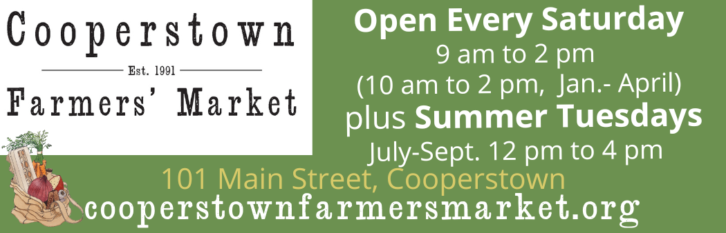 SNAP is welcome and tripled up to $20 per Market. The Cooperstown Farmers’ Market, located close to Doubleday Field, is a program of Otsego 2000.